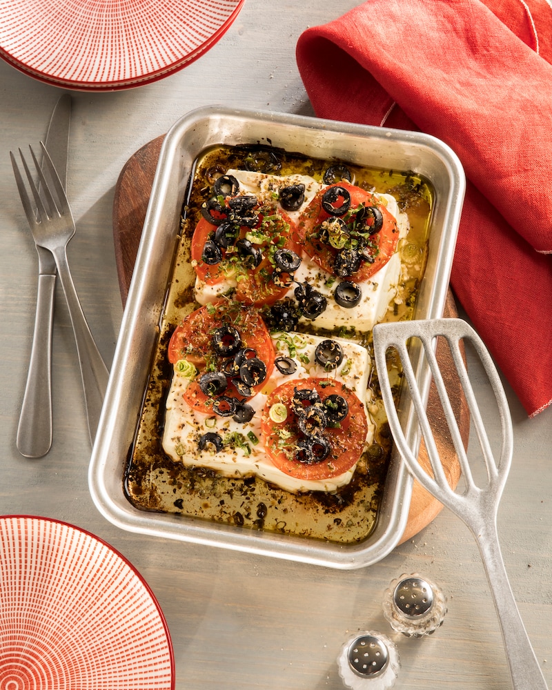 Dieser Feta schmeckt legendär! Die Tomaten und Oliven peppen den Käse perfekt auf.